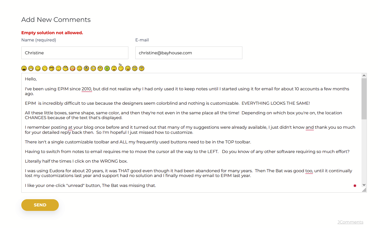 I obviously like EPIM or wouldn’t have used it so long, but the user experience is not what it could be. And, maybe I just haven’t figured out HOW to do things.
